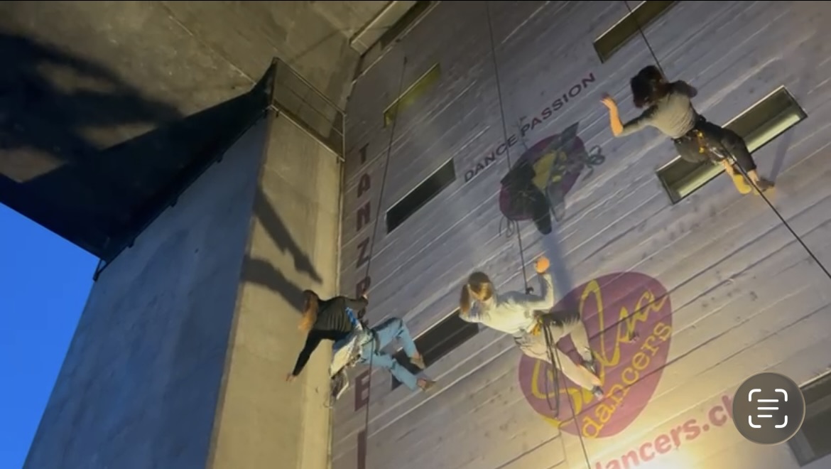 In summer 2026, American university students from BYU will again join me in the Grosse Halle, Bern, to learn aerial dance skills. I will also use that week to research ideas for my next big aerial dance performance which will take place in the Grosse Halle in 2027.