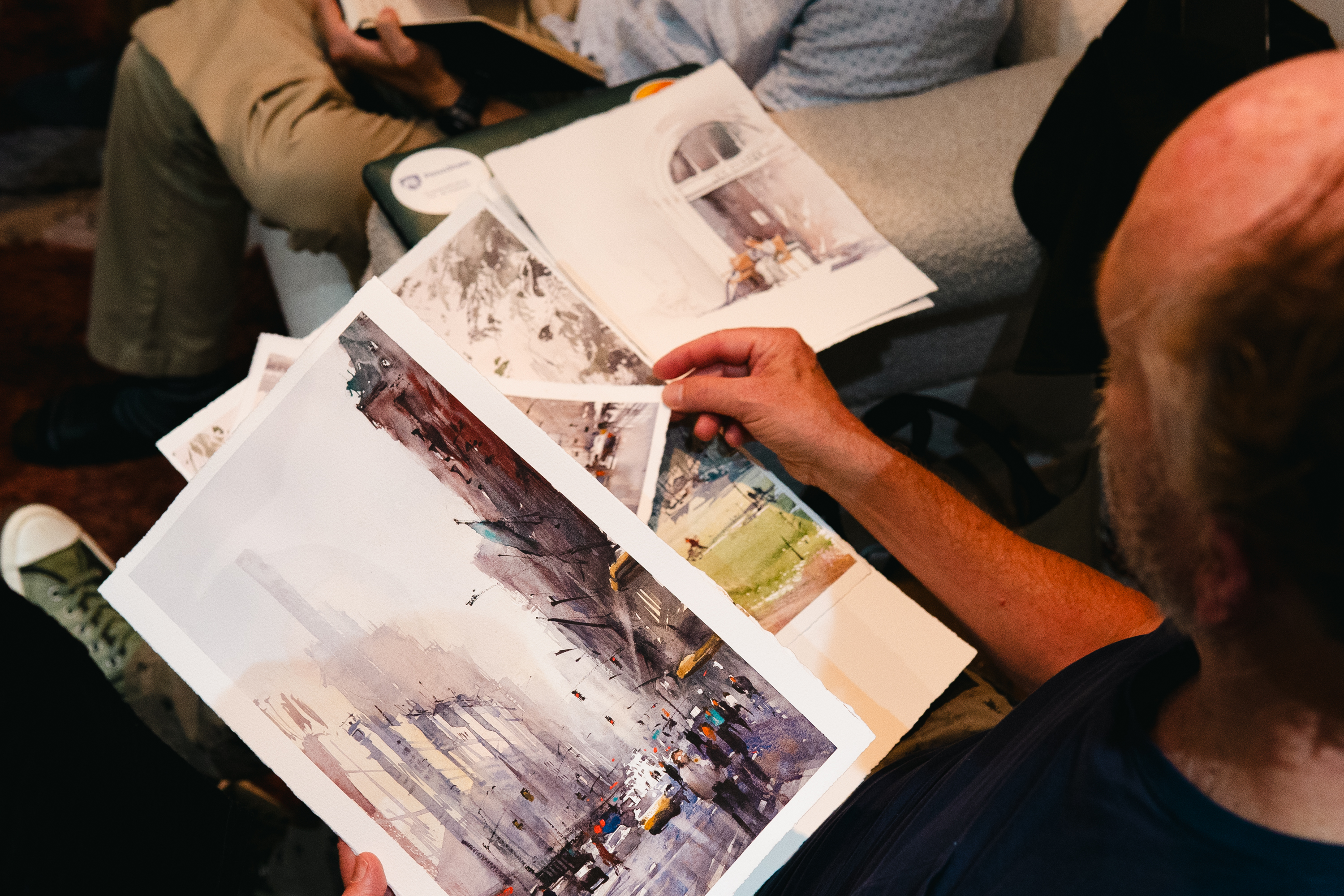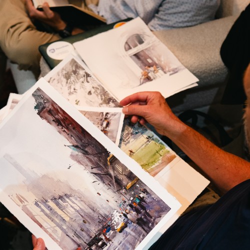 One morning I joined Michelle Nixon (watercolourist) as she was painting in plein air. In contrast to my need of having bodies and a studio to work, Michelle could unpack her magic (self made) Mary Poppins-like box anywhere. For Michelle, watercolour is more of a life philosophy. She has to accept every stroke she makes, as she can not correct her choices later. This watercolour practice was, in part, borne out of having young children and limited time. Having this in common with Michelle, we definitely spoke the same langugage about juggling life, being a mother and an artist.