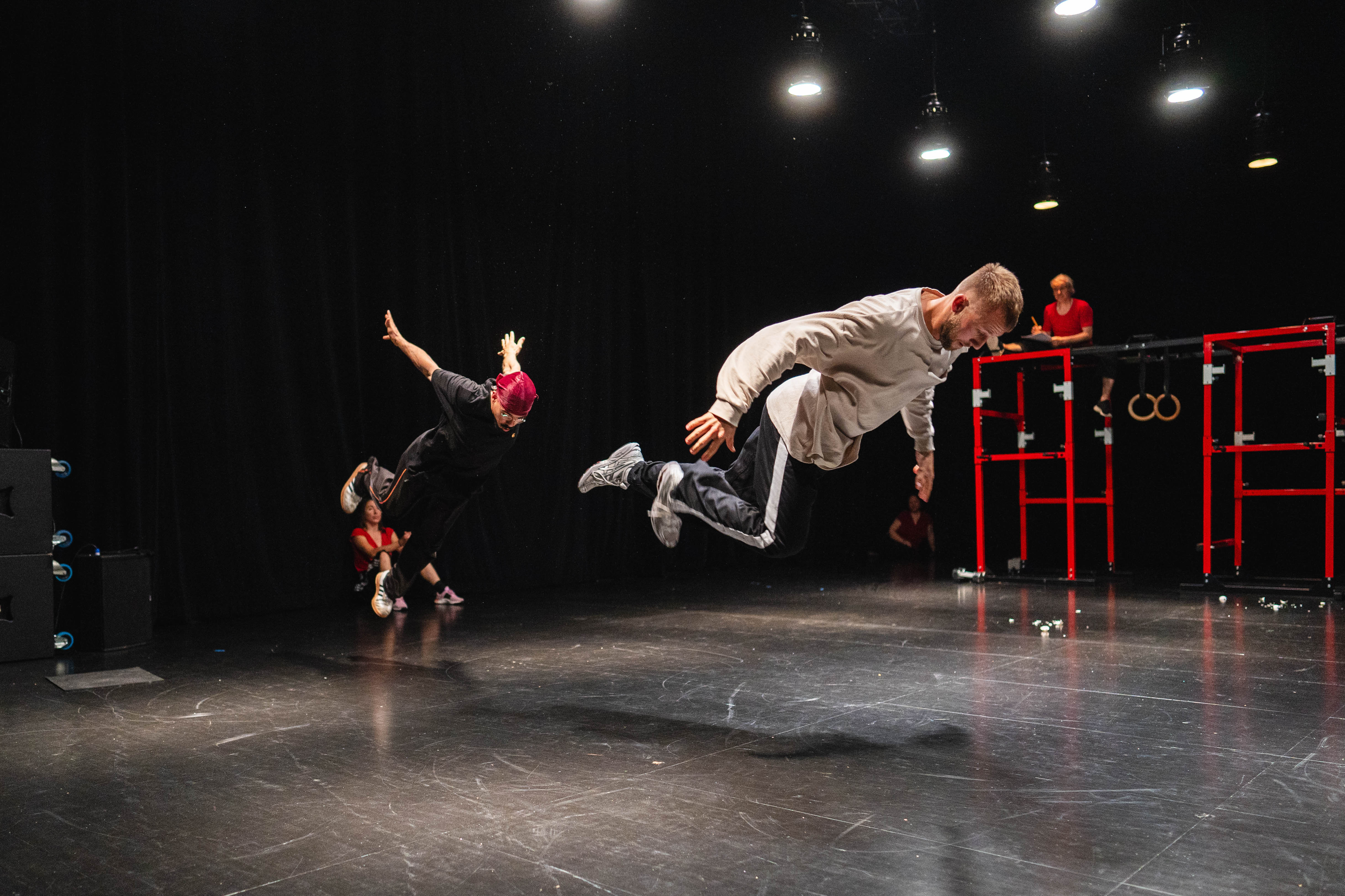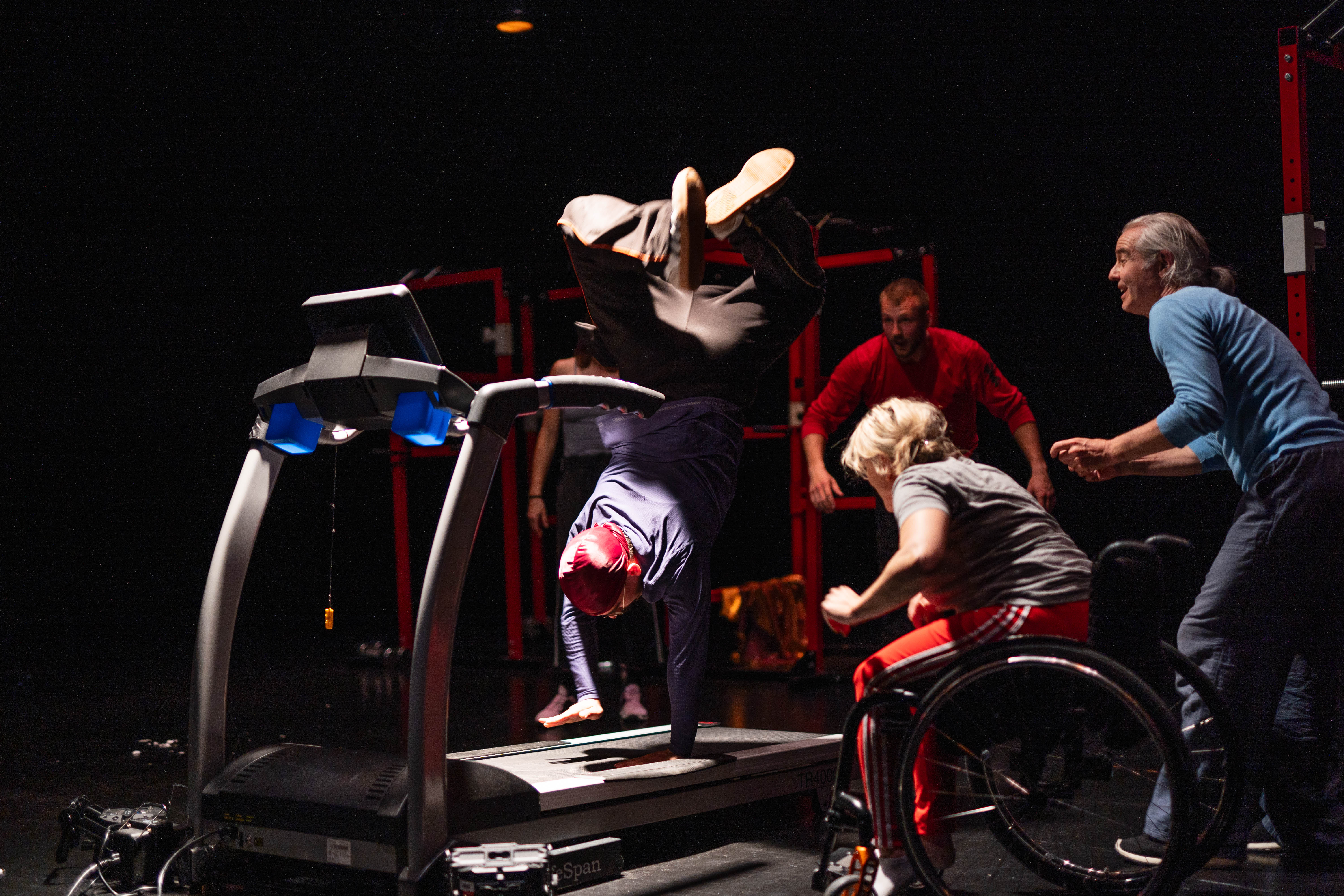 RUN combines storytelling, breakdance, contemporary dance, improvisation and belly dance in a unique mix, transforming the dumbbells, punching bags and metal constructions of a gym into touching landscapes of the past. Each performer and his or her story stands for itself. There are no winners or losers.